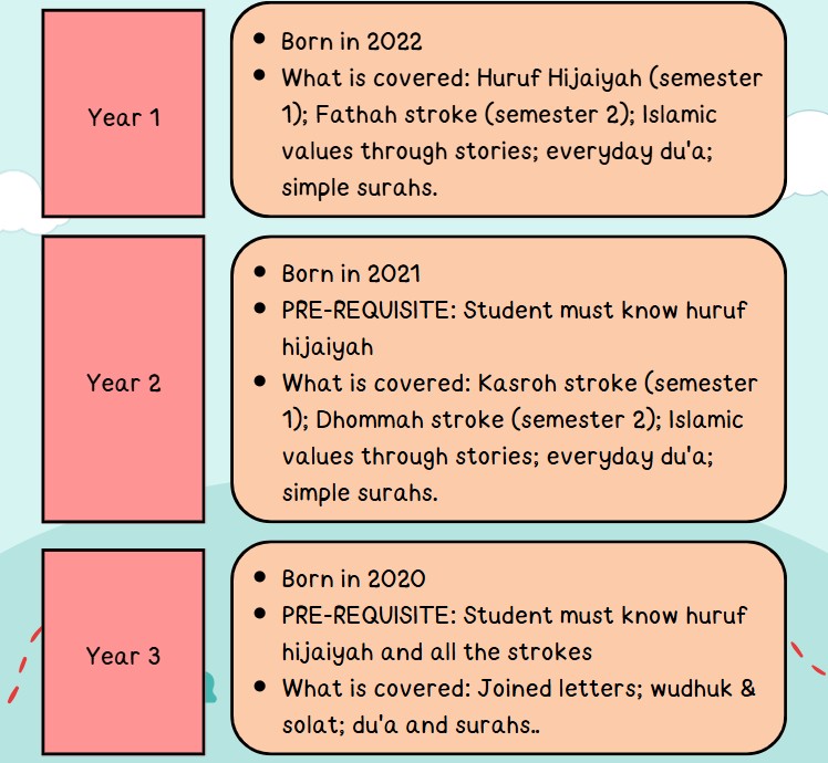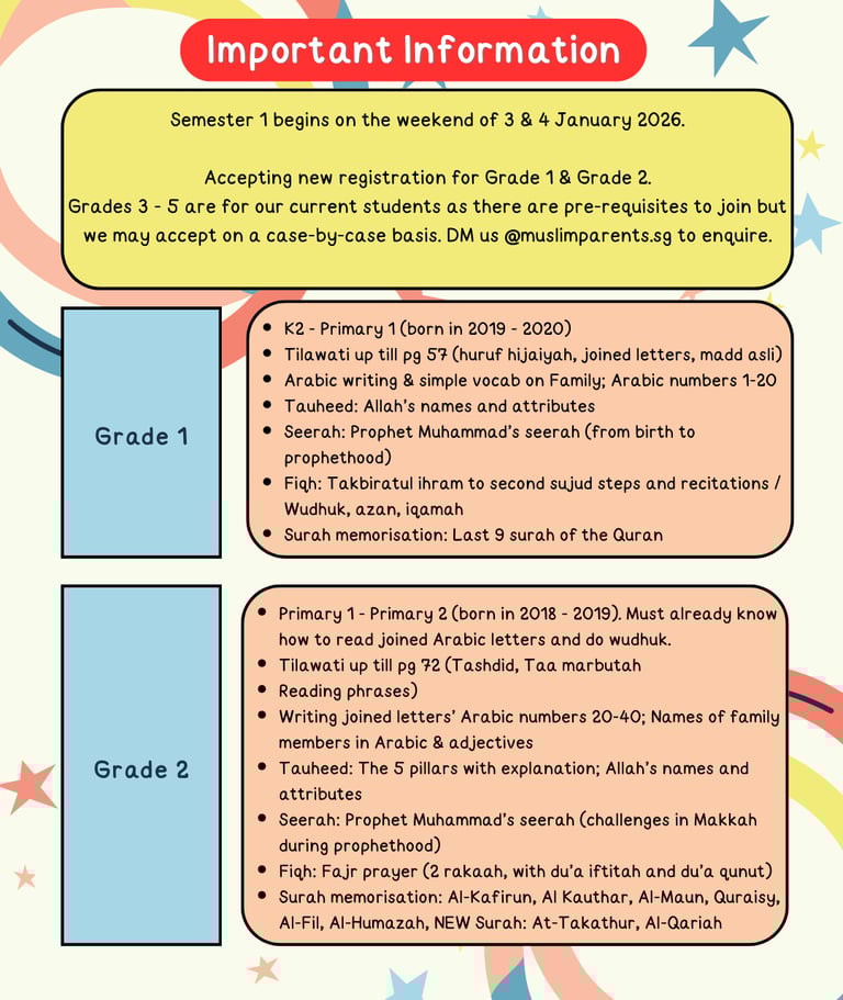 This is an after-school Islamic enrichment service for students from Primary 1 to Primary 6.